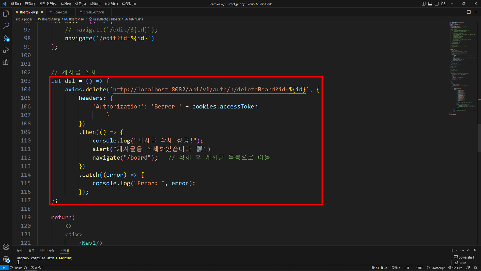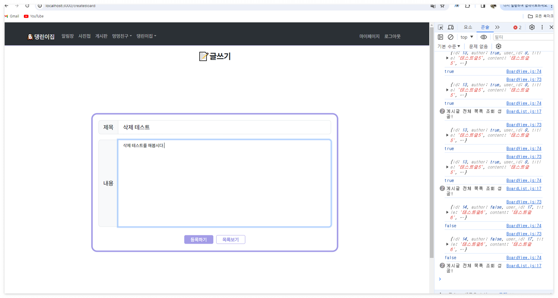 내가 작성한 글에는 이렇게 수정, 삭제 버튼이 보이게 됩니다.