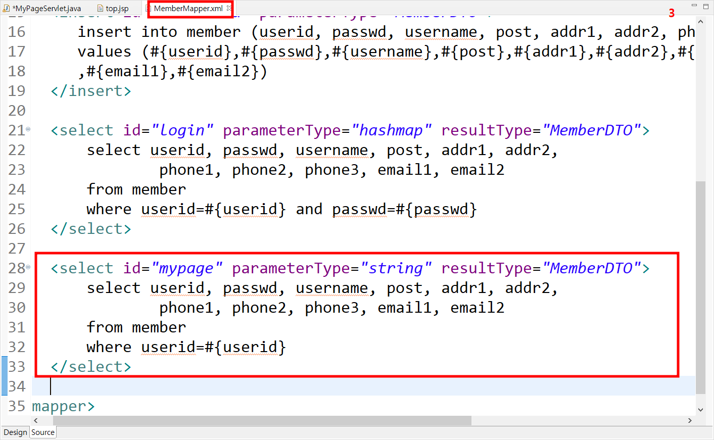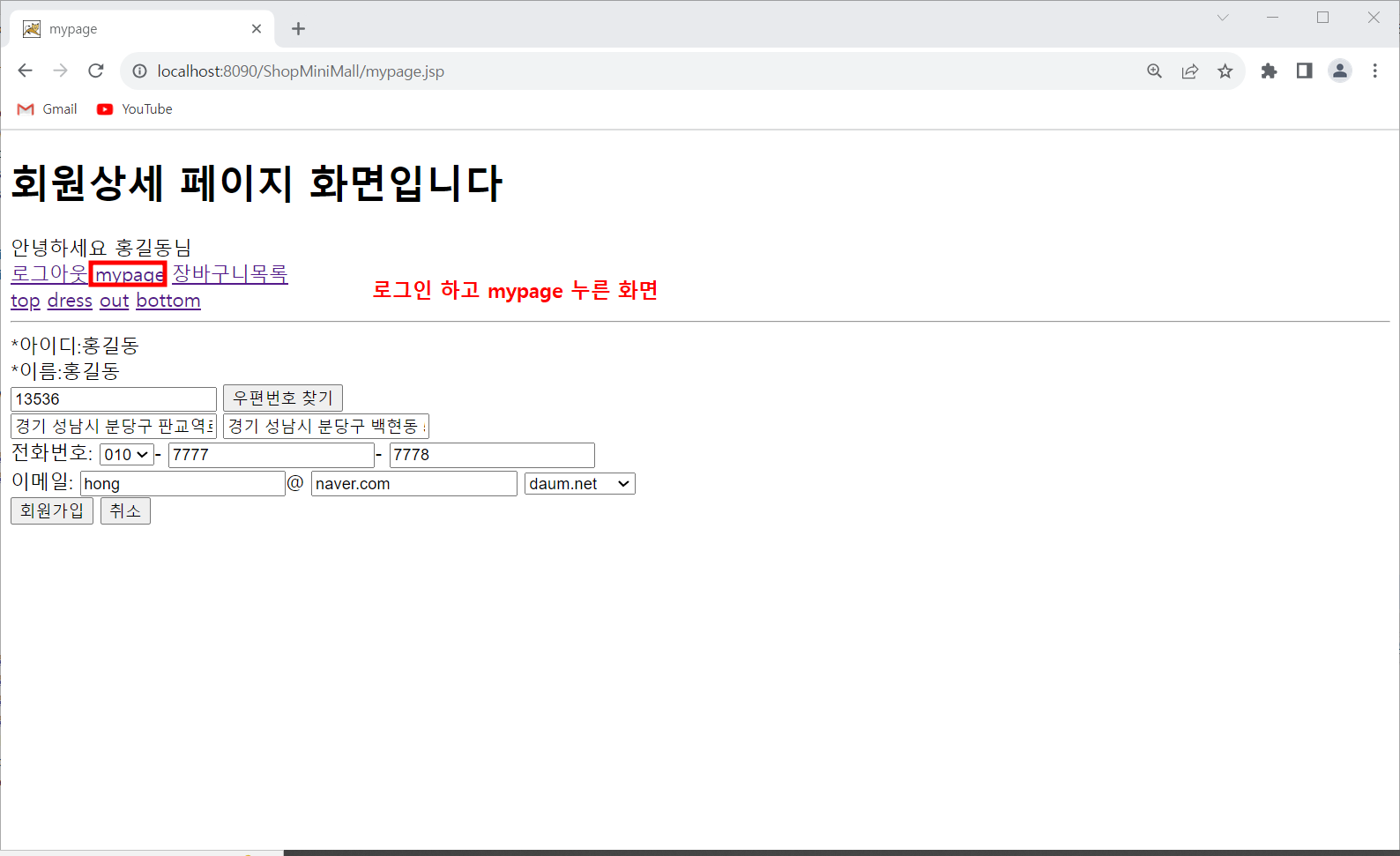 ✅ top.jsp의 mypage에 MyPageServlet url 추가해주기