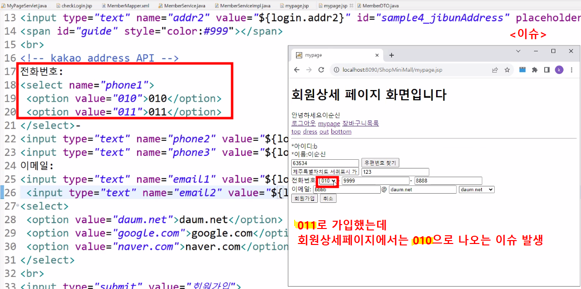 마이페이지에서는 무조건 010으로 나오는 이슈 발생