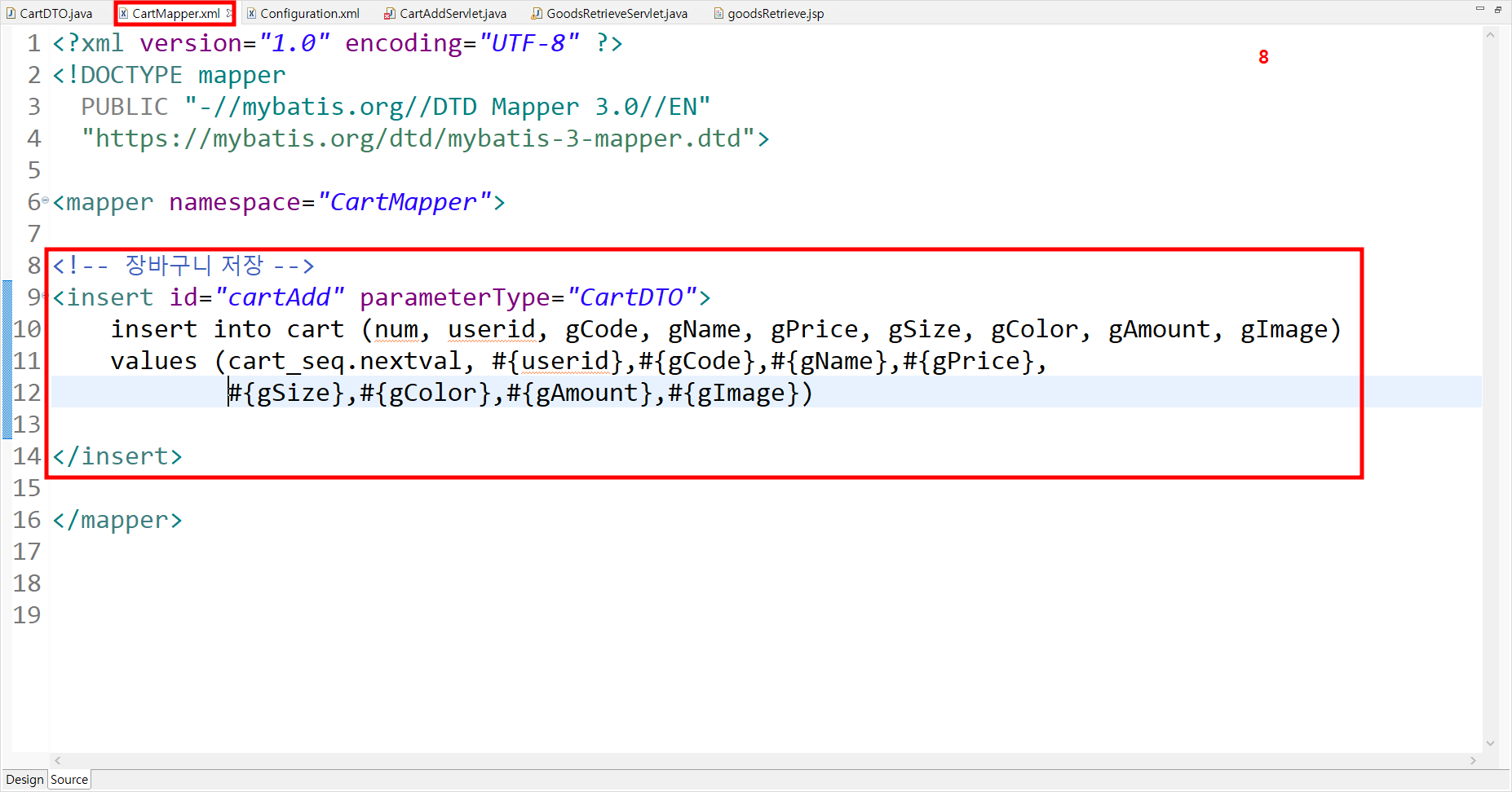 - CartMapper.xml 추가하고 Configuration.xml 등록