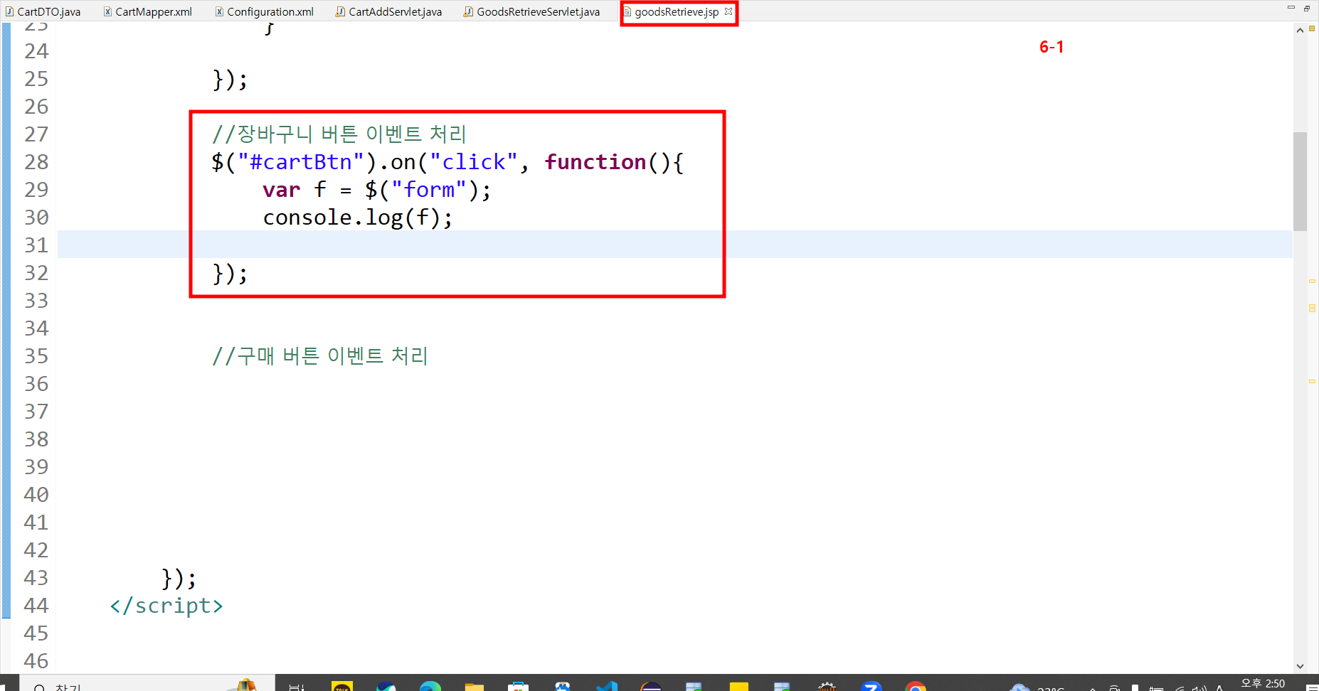 ✅ 장바구니 버튼 이벤트 처리문 작성 (jQuery)