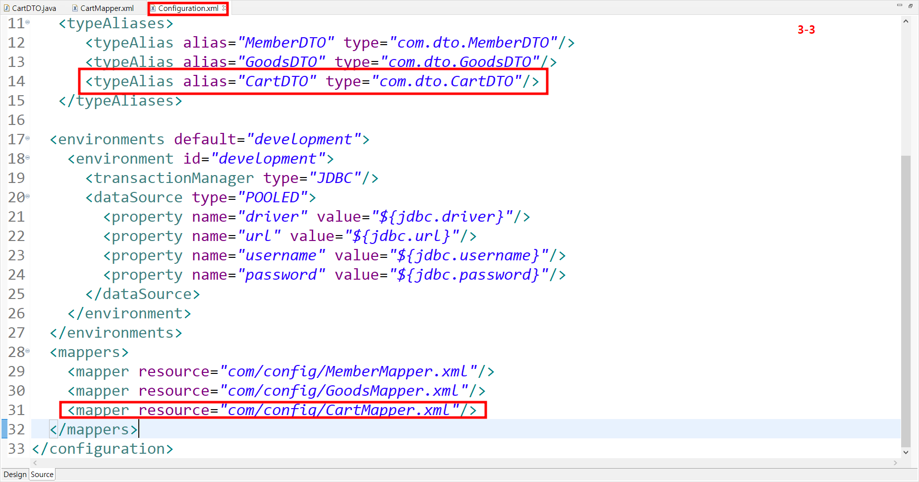 ✅ Configuration.xml에 CartDTO & CartMapper 등록하기