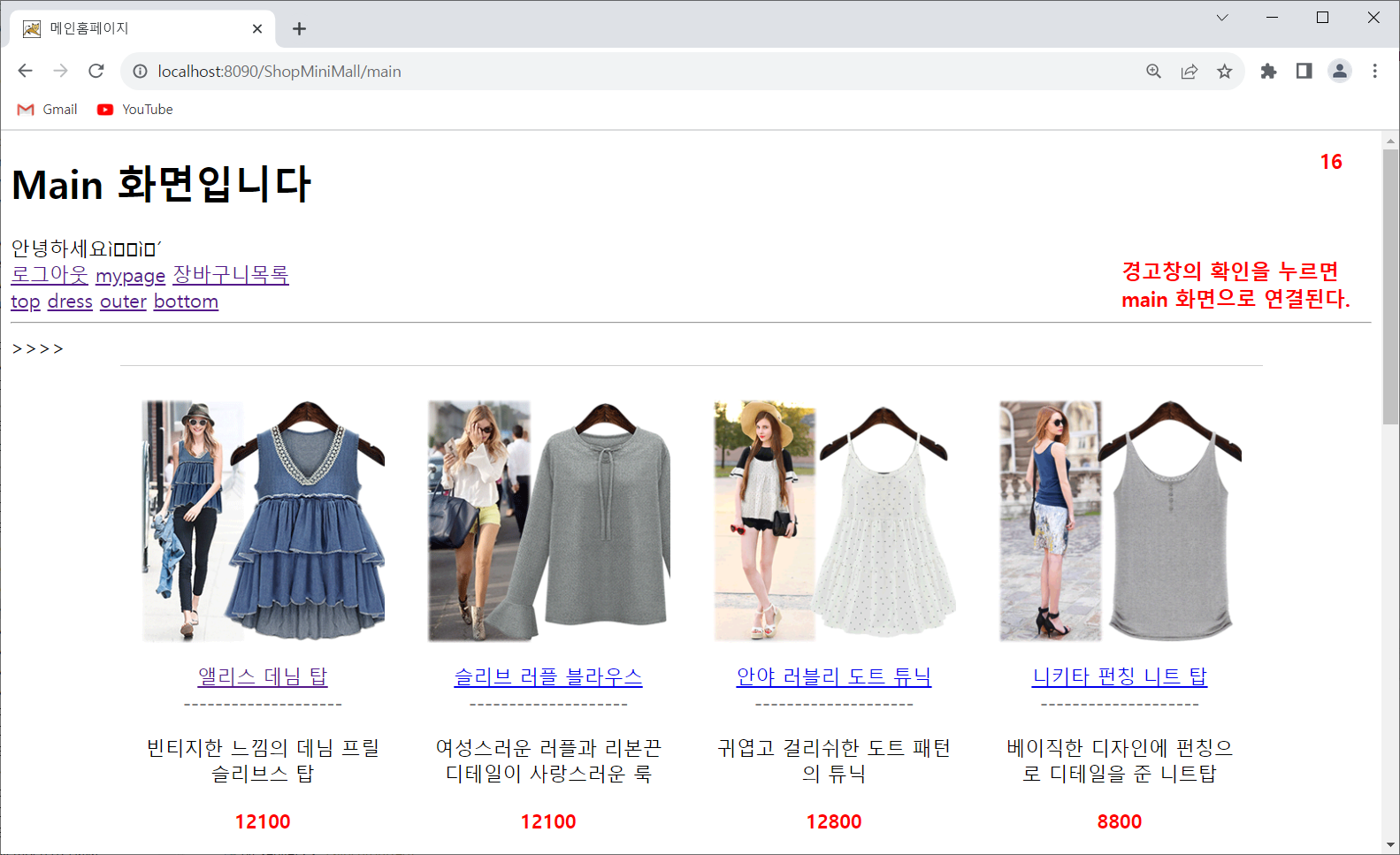 - 장바구니 저장 성공 후 '확인'을 누르면 main으로 간다. => 상대경로이기 때문에 ../main
