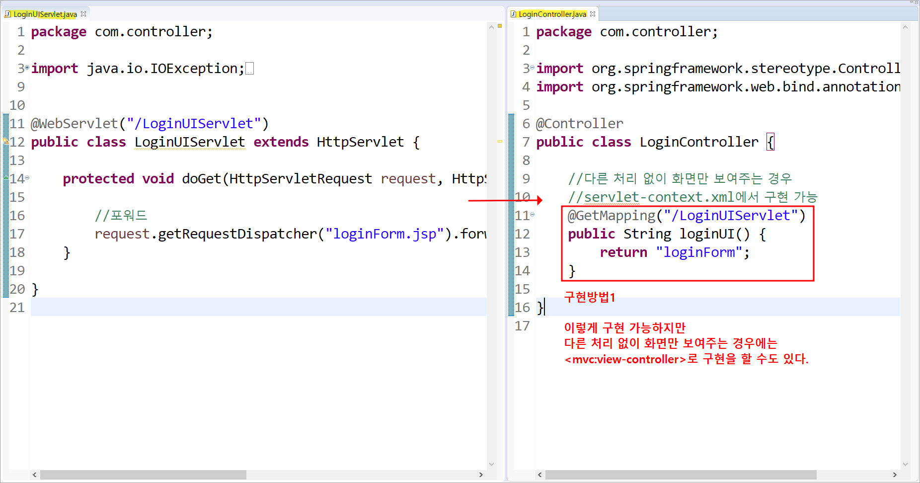 컨트롤러에서 아무런 기능을 수행하지 않고 다른 처리 없이 오로지 화면(JSP)만을 보여주는 경우가 있다.