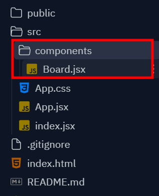 src 안에 components 폴더를 만들고, 그 안에 Board.js 파일을 생성합니다.