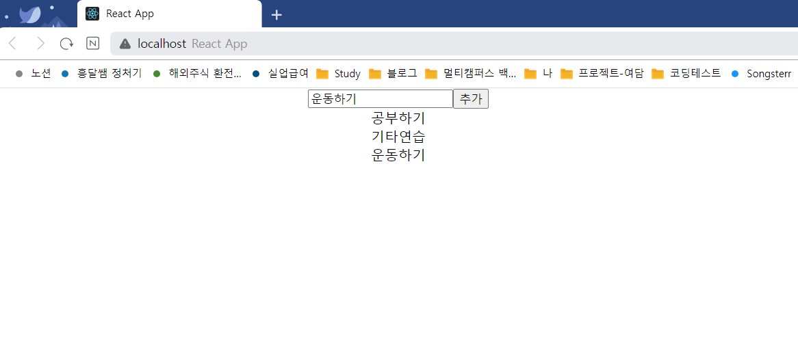 먼저 App.js에 인풋창과 버튼을 생성해줍니다.