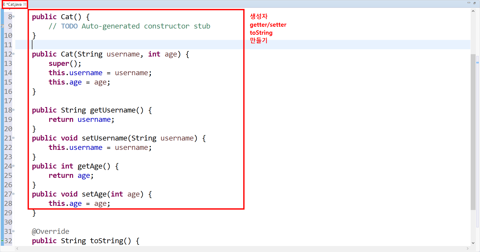 - cat은 Autowired로 주입할 것이기 때문에 그대로 둔다.