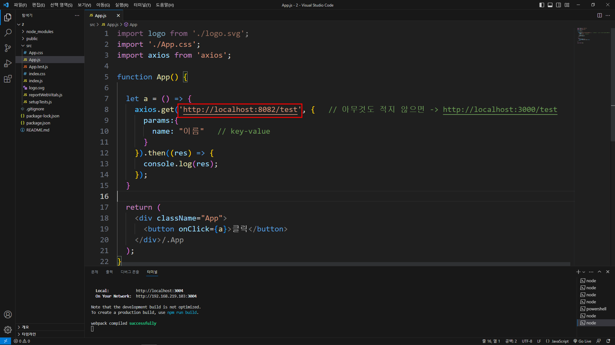 run 했을 때, 이미 열린 포트라는 오류가 떴다면 포트를 종료하고 다시 실행 해야한다.