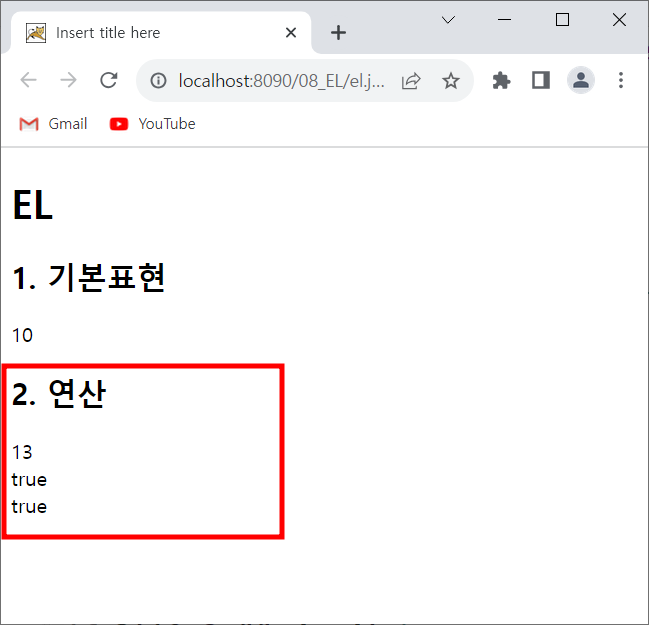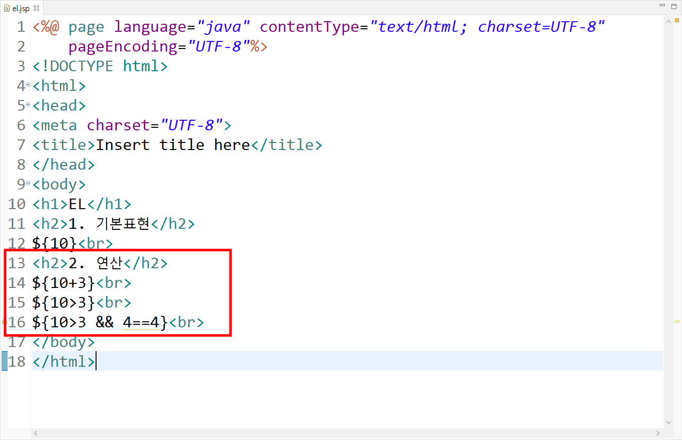 ⇒ 표현식에 사용할 수 있는 것은 10(실제값) 또는 변수(scope에 setAttribute에서 사용된 key값)