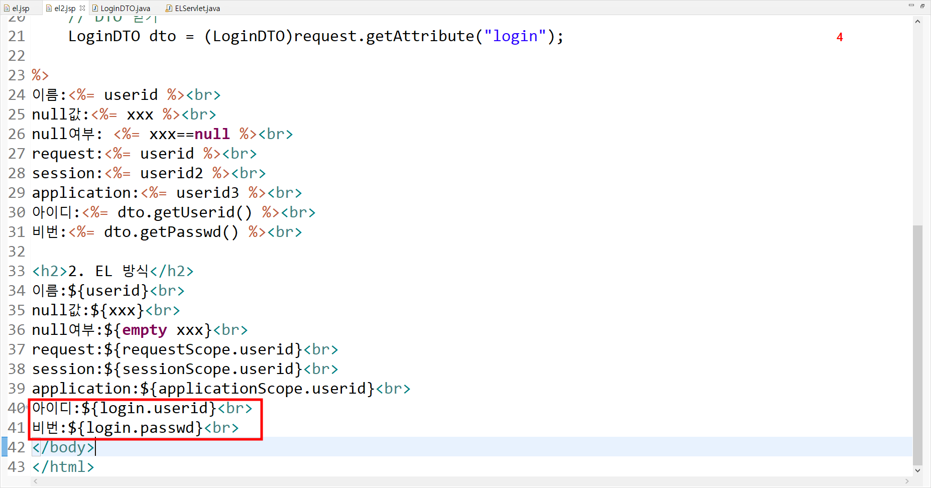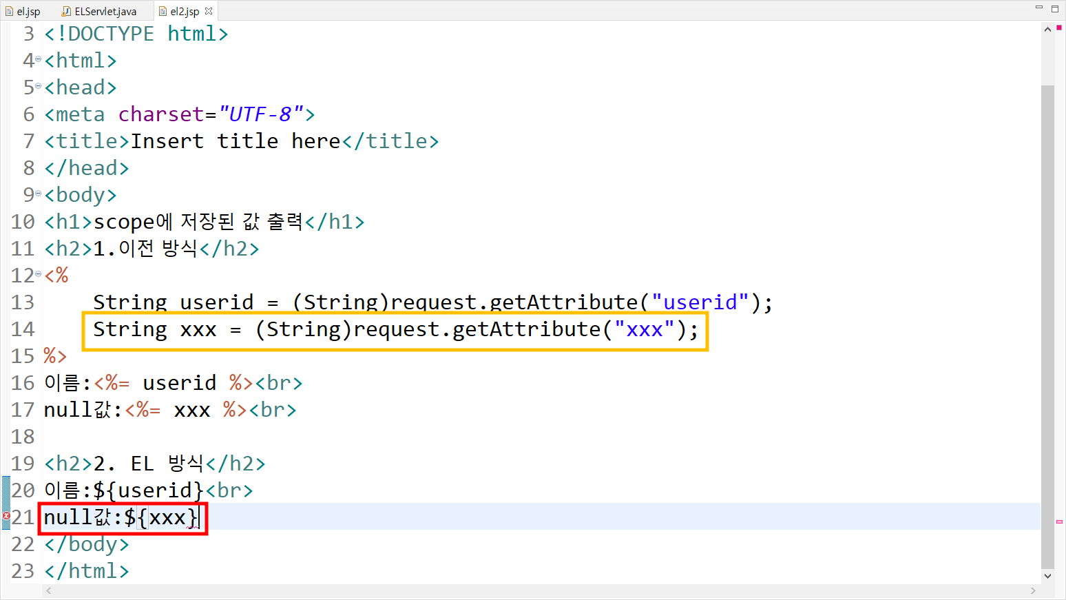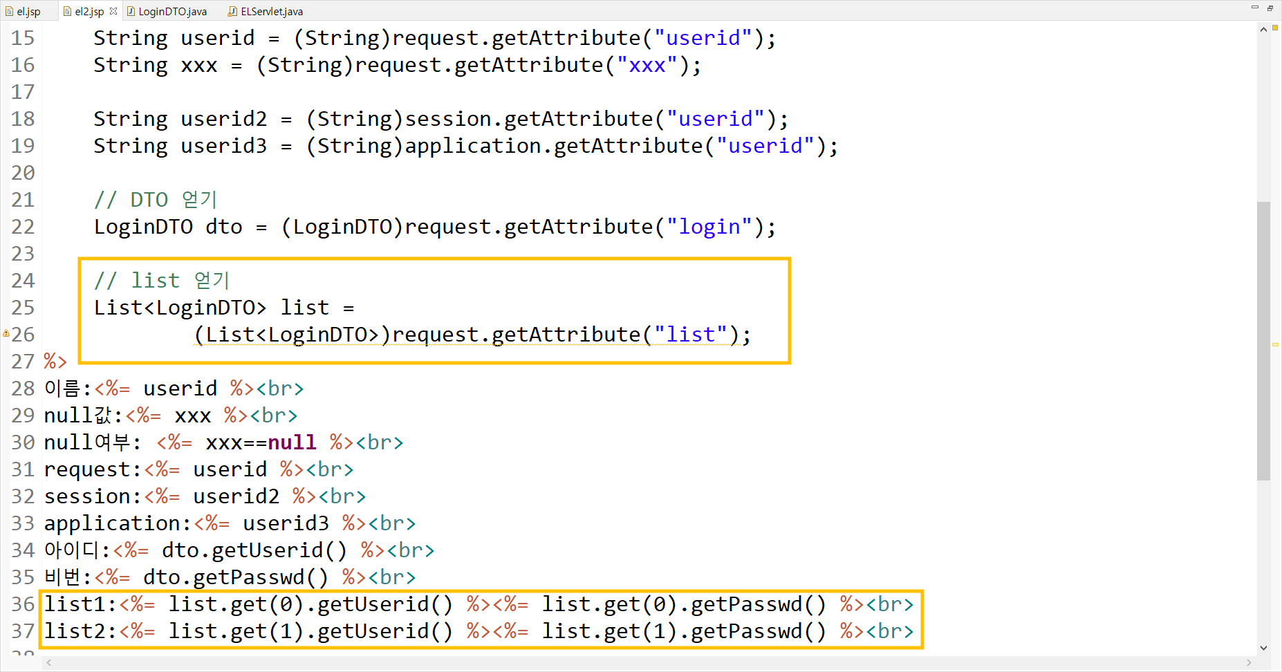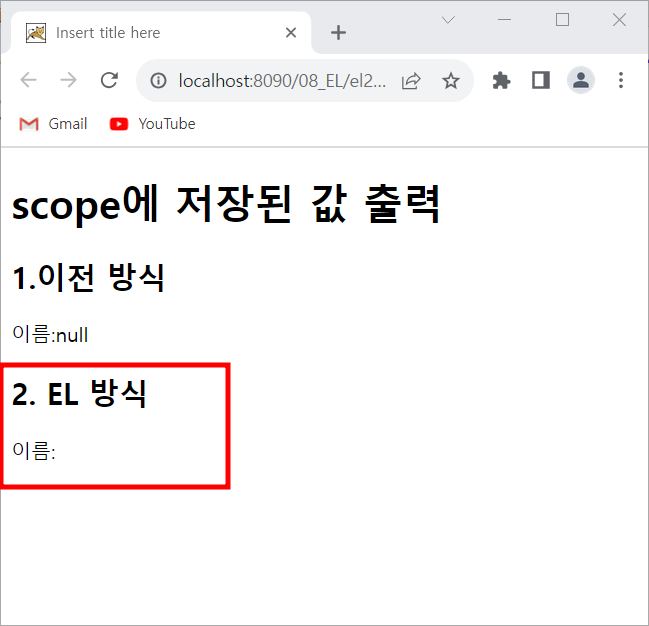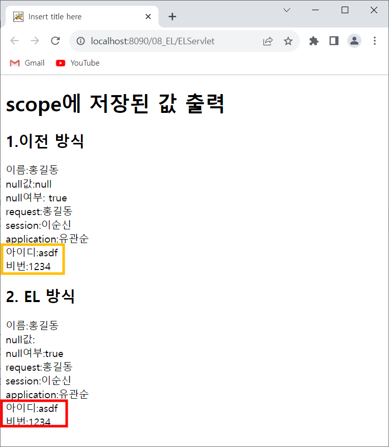✅ 서블릿에서 scope에 저장된 데이터를 웹 브라우저에서 매우 편리하게 출력할 수 있다.