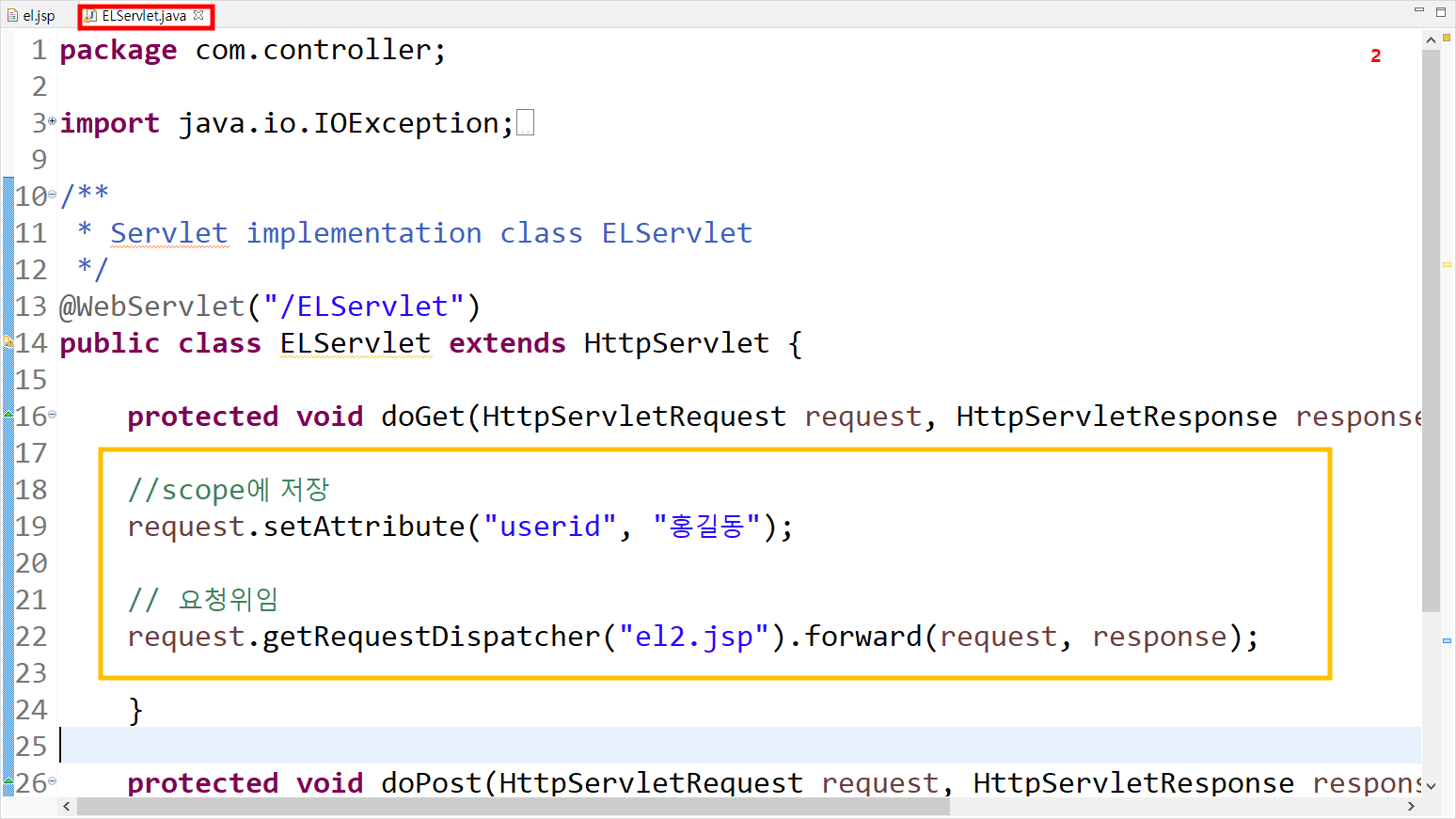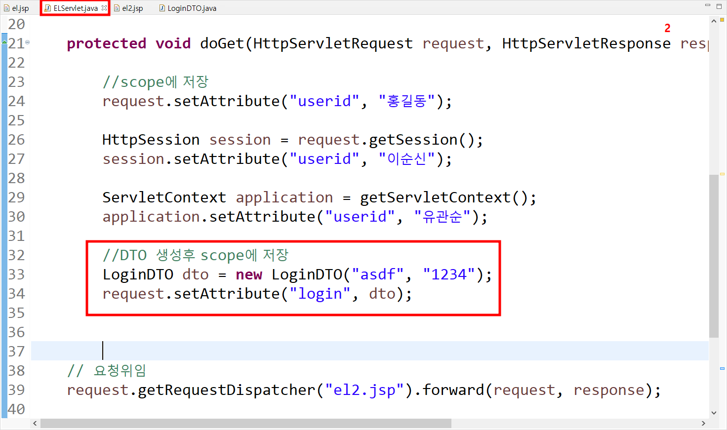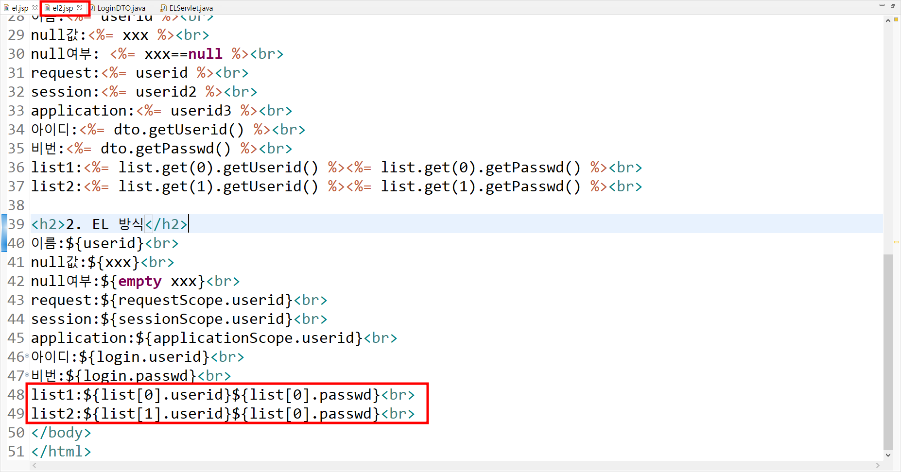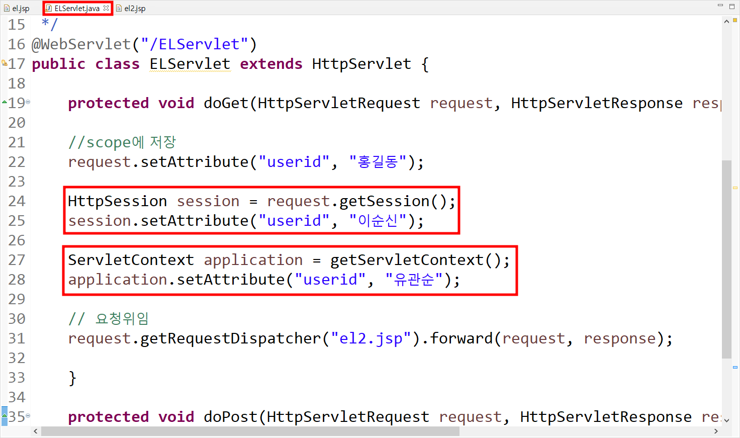 ✅ 서블릿에서 scope에 저장된 데이터를 웹 브라우저에서 매우 편리하게 출력할 수 있다.