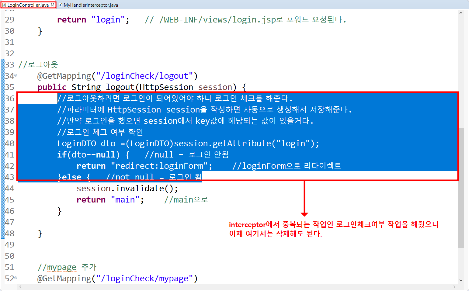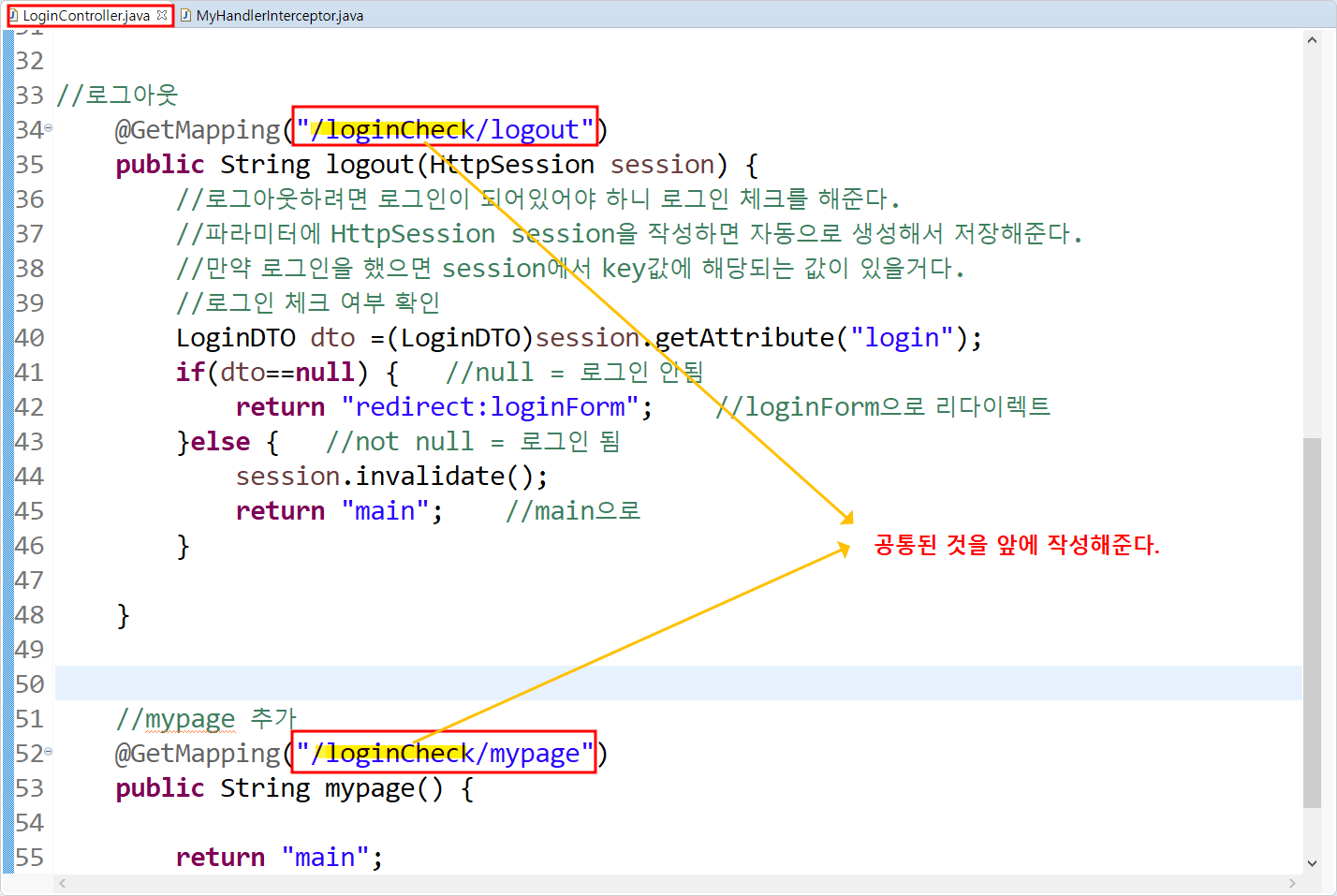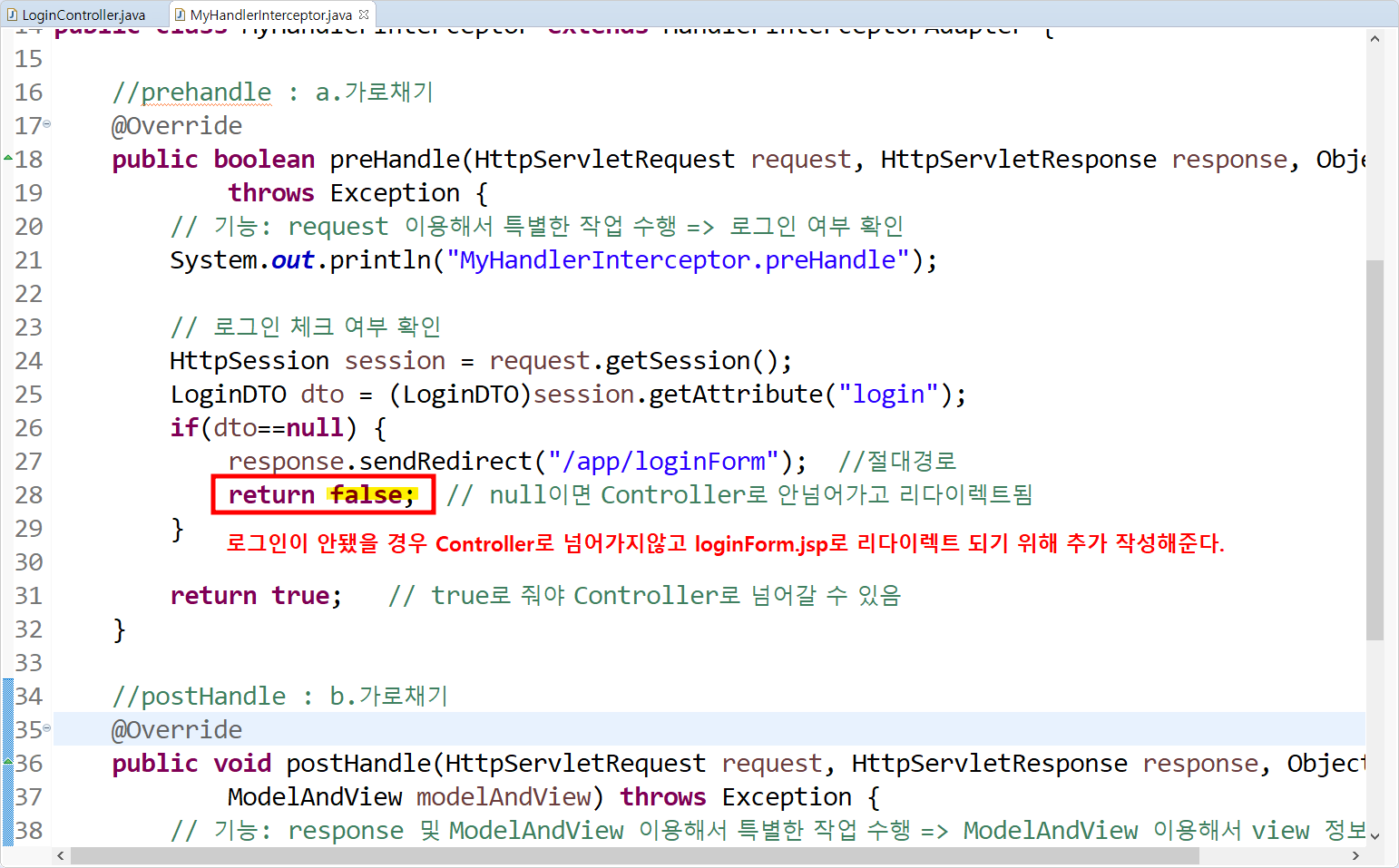 Interceptor를 이용해서 중복되는 작업 (로그인 체크 여부)을 할 수 있는 것이다.