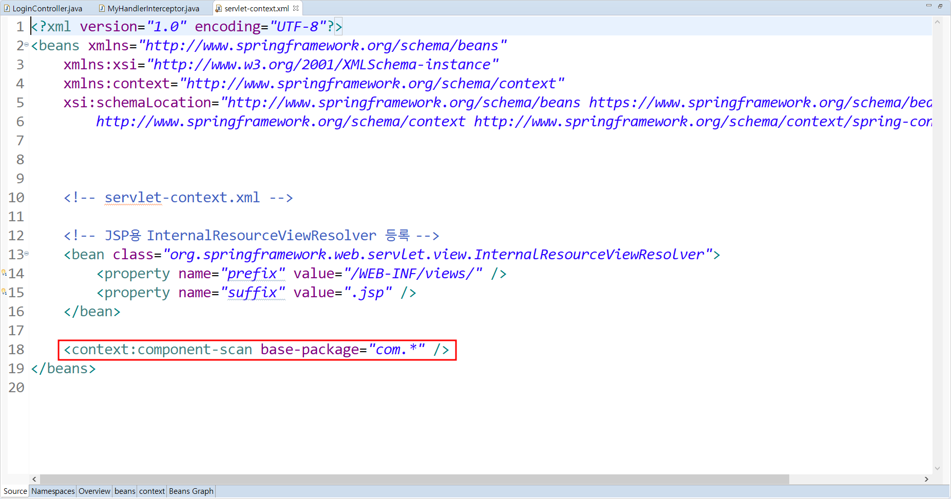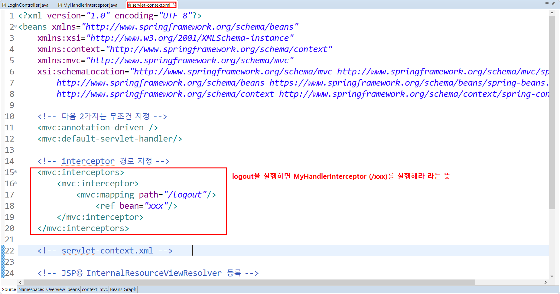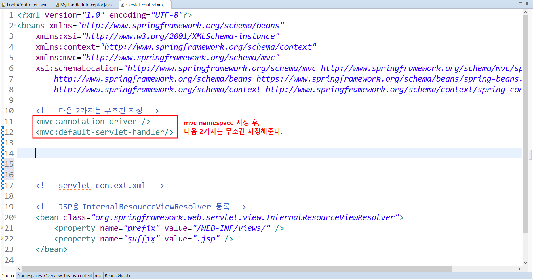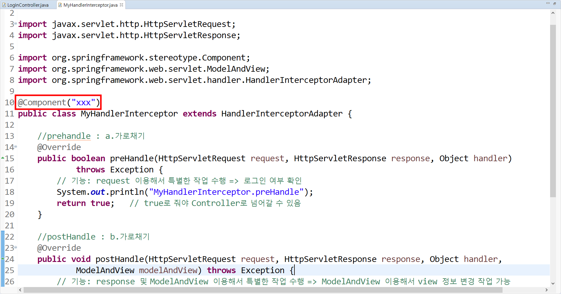 ⇒ 인터페이스가 아니니까 필요한 것만 선택해서 구현하면 됨 - servlet-context.xml에 빈으로 등록 ( <bean> 또는 component-scan )
