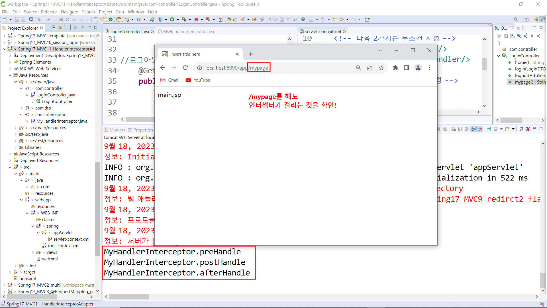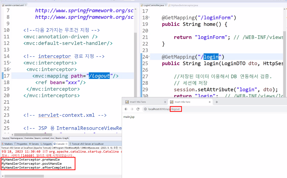 Controller 전 / 후 / jsp 화면처리 후에서 가로채기 가능