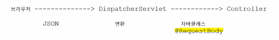 브라우저에서 JSON을 전달하면 Controller에서 JSON을 자바 클래스로 자동으로 변환이 가능하다.