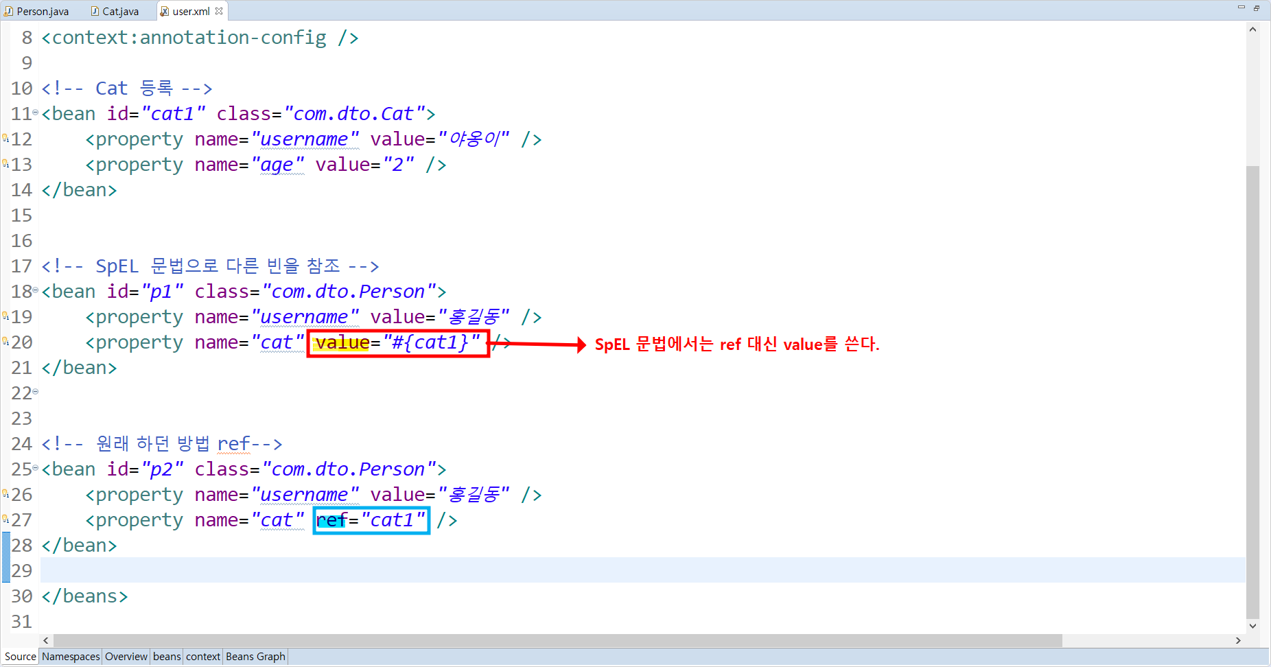 SpEL 문법으로 다른 빈을 참조