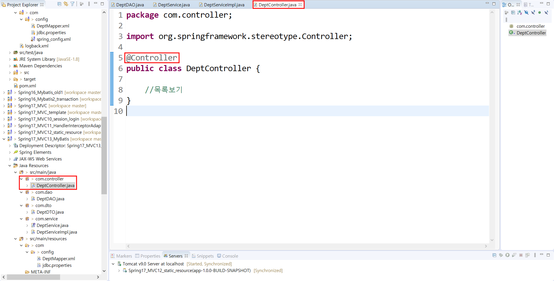 8. DAO, Service , Controller 작성하고 xml에 DAO, Service, Controller 등록( Component-scan )