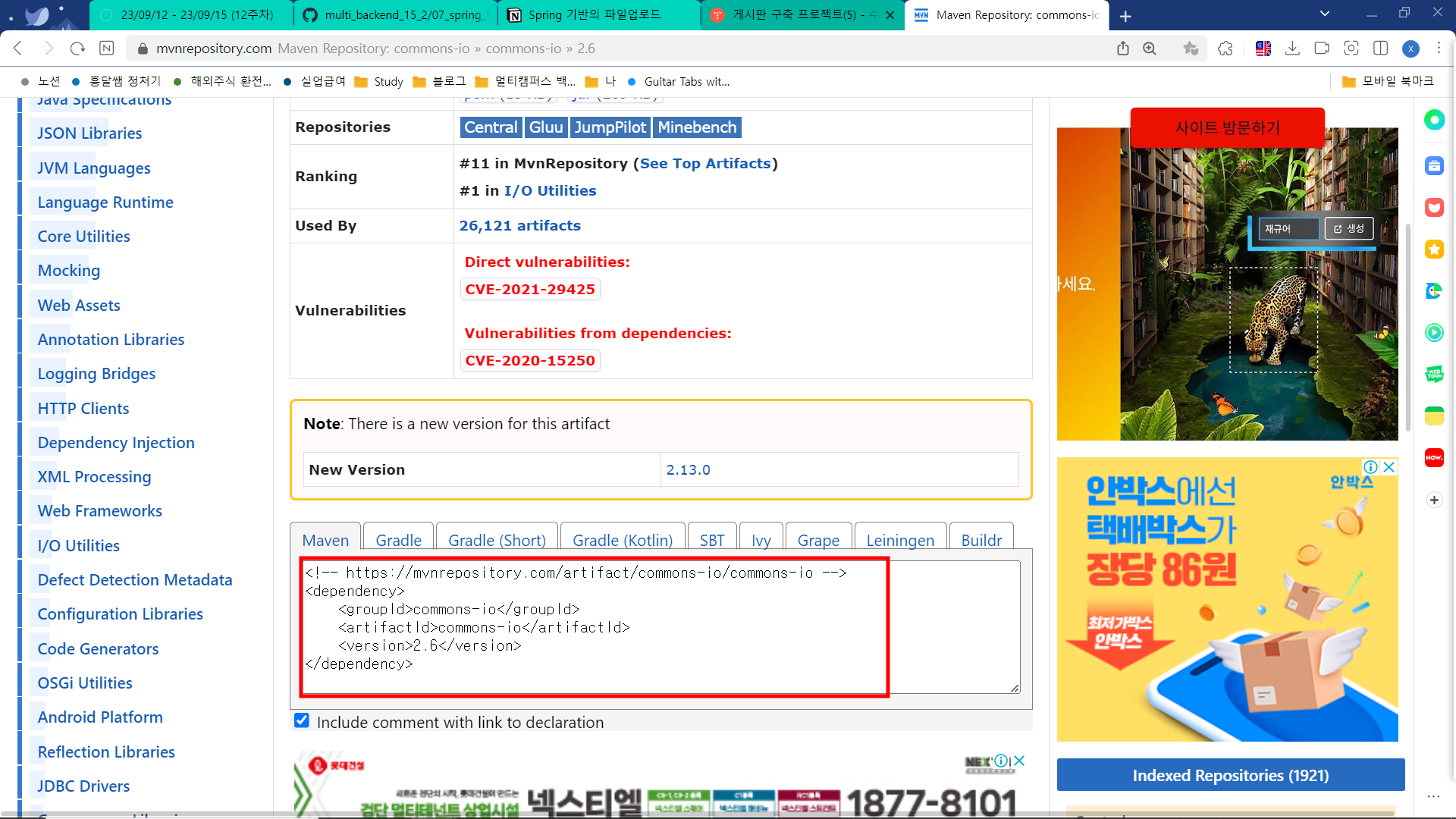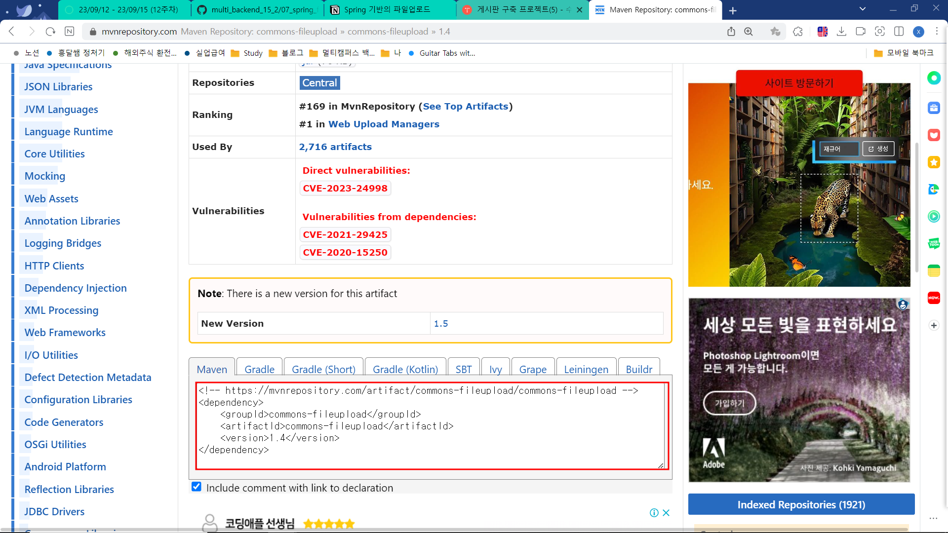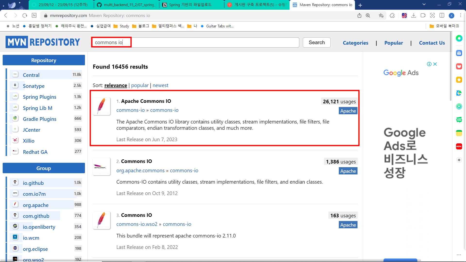 - Apache 제공하는 Commons 기반의 라이브러리 다운 ( FileUpload, IO )