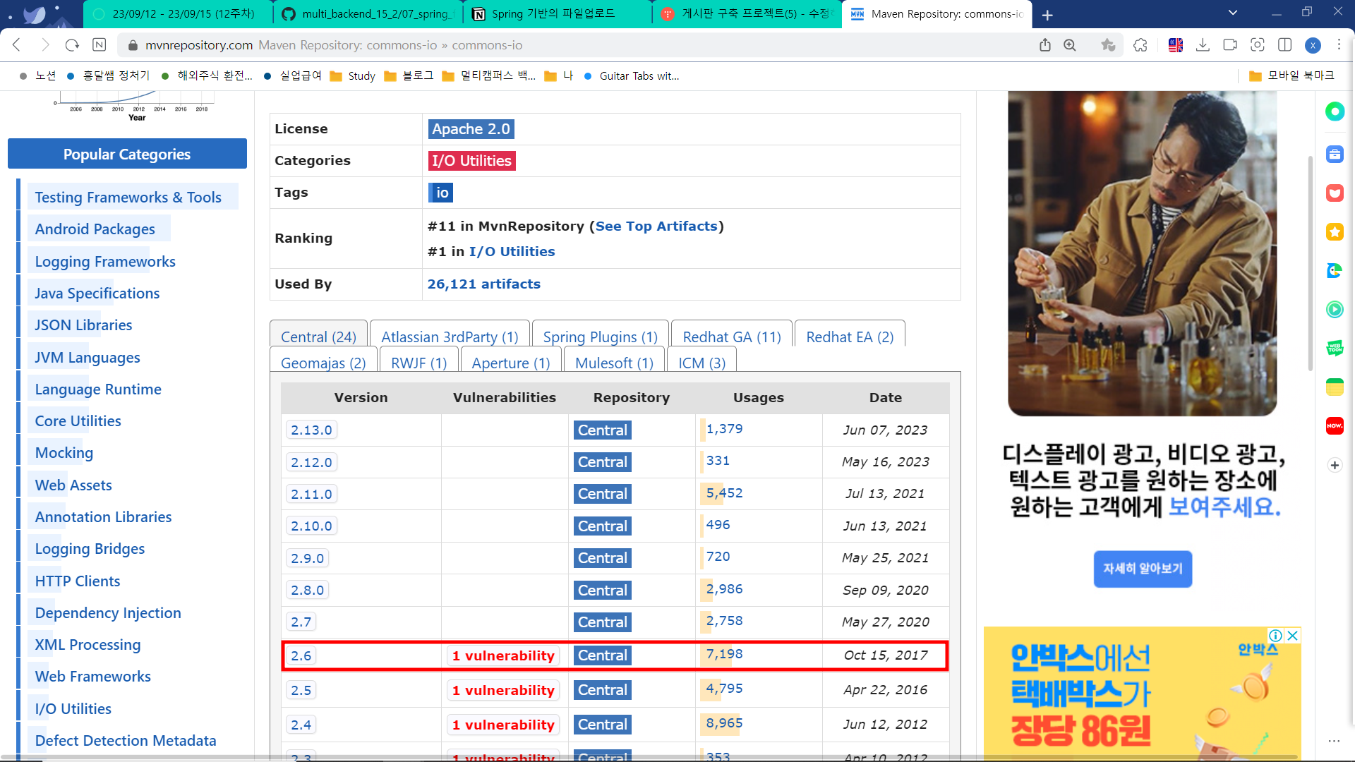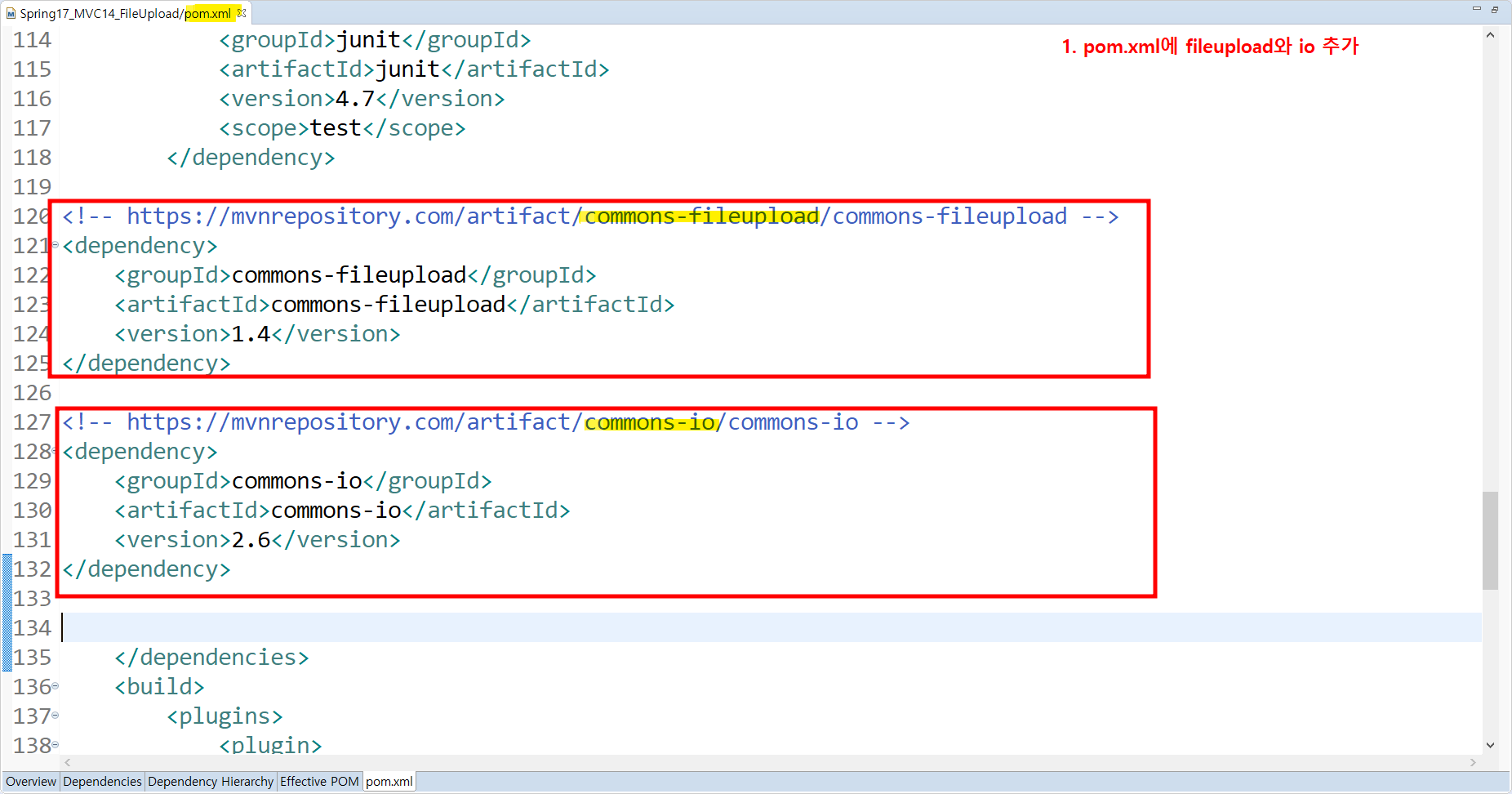 1. Apache 제공하는 Commons 기반의 라이브러리 의존성 추가