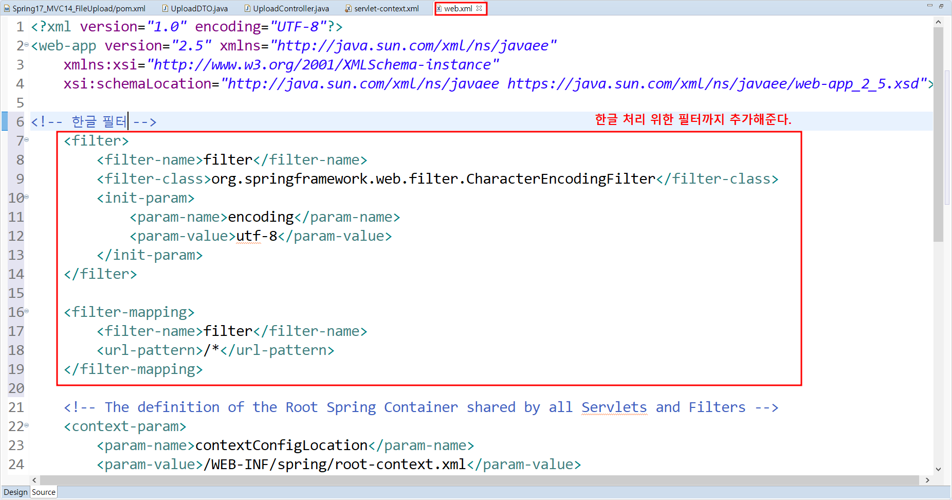 web.xml에 한글 처리 필터까지 추가 작성해주자
